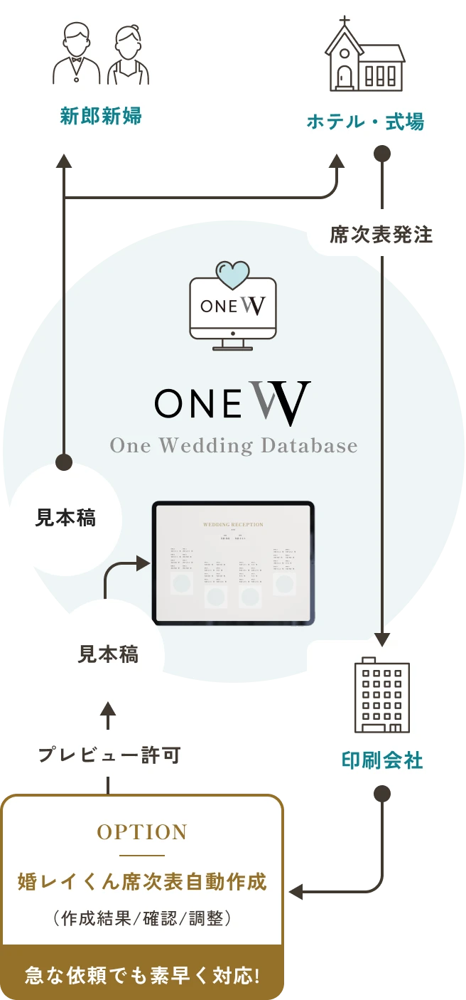 「婚レイくん」とは、ONE-Wをお使いの式場からの席次表注文データを利用して、自動的に席次表を作成します。
